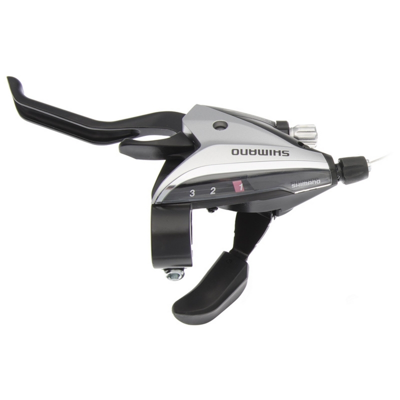 Shimano Acera ST-EF65 — це інтегроване рішення, що поєднує манетку перемикання передач та гальмівну ручку в одному корпусі. Такий формат (моноблок) дозволяє суттєво заощадити місце на кермі та забезпечує ергономічне керування трансмісією та гальмами одночасно. Сріблястий колір серії Acera додає класичного вигляду вашому велосипеду.