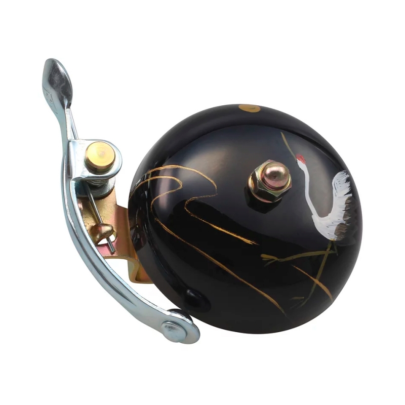 Crane Suzu Handpainted — це втілення японської витонченості та ремісничої майстерності. Кожен дзвоник цієї серії розписується вручну майстрами в Осаці, що перетворює звичайний аксесуар на унікальний предмет мистецтва. Глибокий чорний колір купола слугує ідеальним фоном для традиційних японських мотивів, створюючи стриманий, але розкішний образ вашого велосипеда.