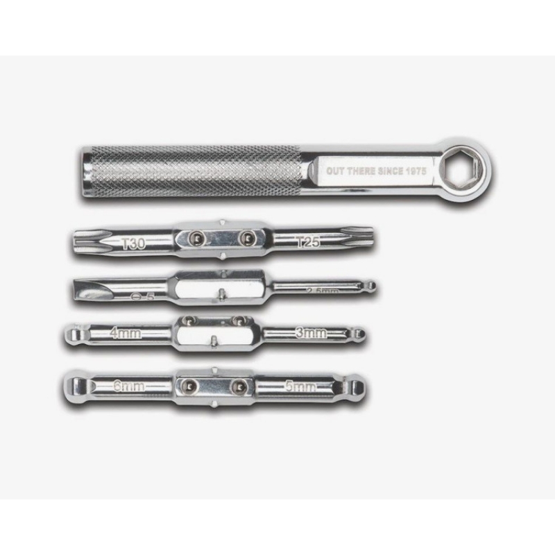 Blackburn Switch Mini-Tool — це інноваційний підхід до велосипедного інструменту. Замість звичного складаного набору, ви отримуєте повноцінну рукоятку та набір двосторонніх біт. Така конструкція дозволяє легко дістатися до важкодоступних болтів і прикладати більше зусилля без ризику пошкодити інструмент або руки.